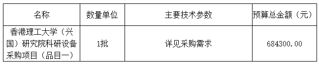 项目名称:香港理工大学(兴国)研究院科研设备采购项目(品目一)